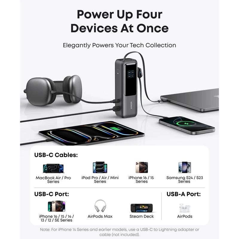 Anker A1695 Laptop Power Bank (25K, 165W, Built-In and Retractable Cables)