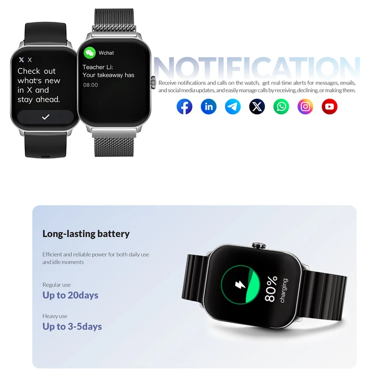Glorimi GC Slim 45mm Smart Watch with Silicone and Magneti