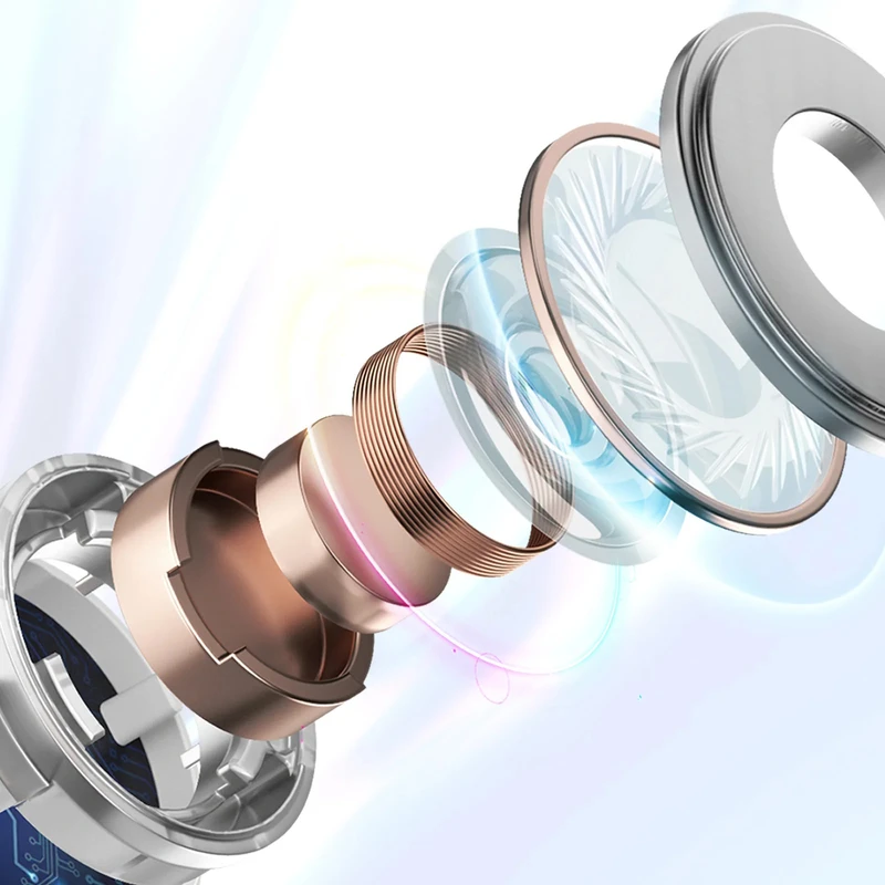 با درایورهای ۱۰ میلیمتری دینامیک کامپوزیت، صدای MoriPods ANC متعادل و طبیعی (V-shaped ملایم) است که برای ژانرهای پاپ، الکترونیک، راک یا پادکست عالی عمل میکند – باس عمیق و تمیز (تأکید در ۶۰-۱۰۰ هرتز بدون غرق کردن)، میدهای روشن و واضح (وکالها برجسته و احساسی)، و treble دقیق با جزئیات خوب بدون سایش یا خستگی. صحنه صوتی متوسط و immersive است، مناسب برای موسیقی casual یا ویدیوها، و دیافراگم کامپوزیت، وضوح فرکانسهای بالا را افزایش میدهد – کاربران گزارش میدهند که ۱۵ ساز مختلف را به راحتی تشخیص میدهند. کدکهای AAC/SBC، کیفیت HD برای casual listening فراهم میکنند، هرچند برای ژانرهای پیچیده مثل جاز، جزئیات ظریف متوسط است. بدون اپ اختصاصی برای EQ، صدا ثابت است، اما در مقایسه با رقبا، تعادل آن بهتر از P20i است، هرچند MeloBuds ANC پویاتری دارد.