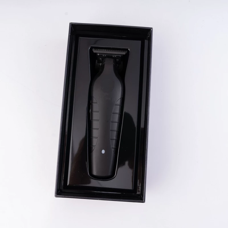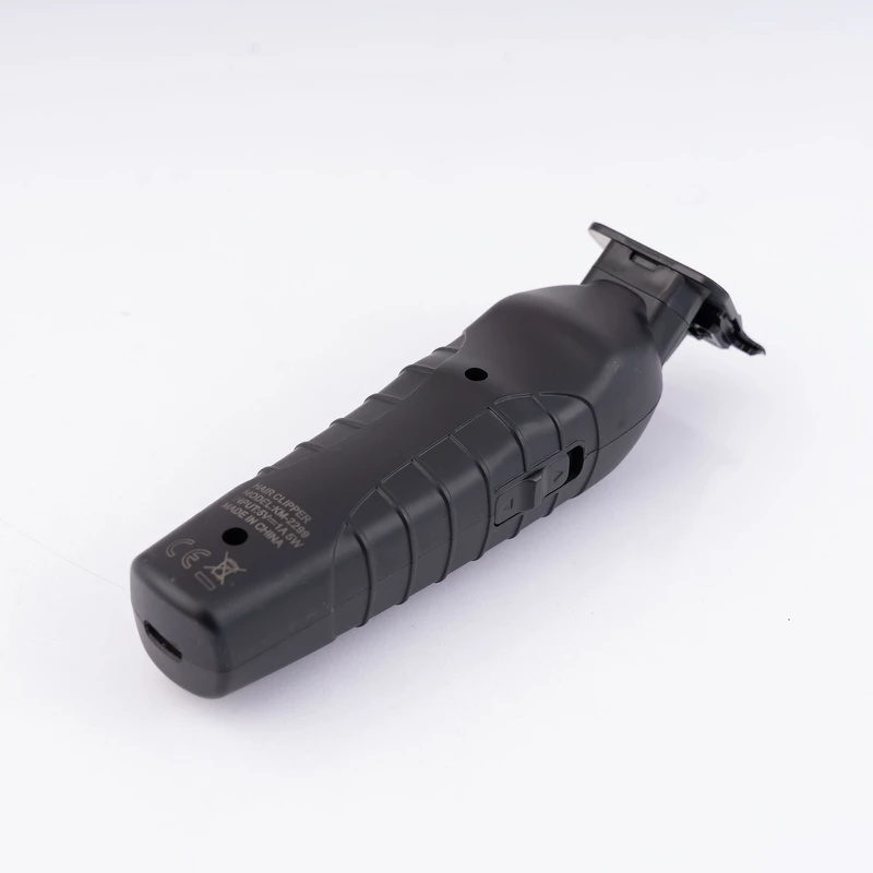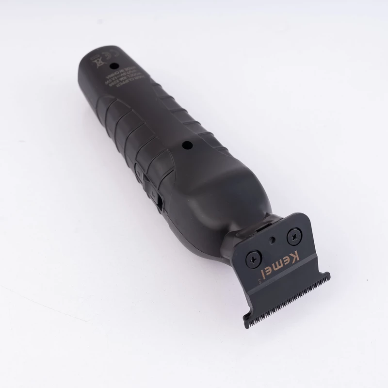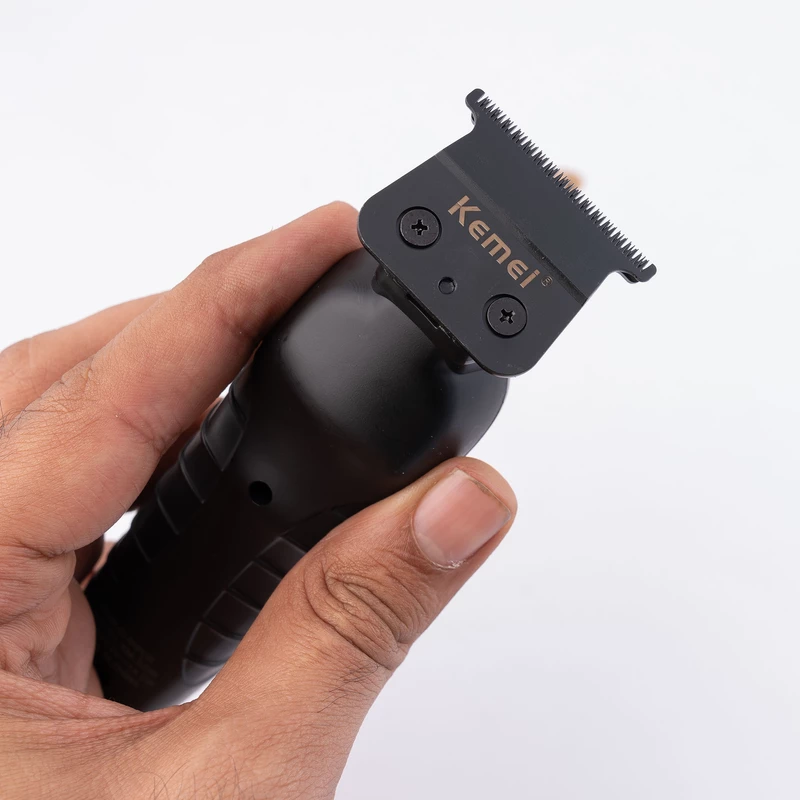 KM-2299 با بدنهای از جنس ABS مقاوم و پوشش فلزی، ظاهری حرفهای و مشکی مات دارد که وزن آن را به حدود ۲۰۰ گرم محدود میکند – سبکی که کنترل دقیق را بدون خستگی دست ممکن میسازد. ابعاد کامپکت (حدود ۱۵۰x۴۰x۳۰ میلیمتر) آن، حمل آسان در جیب یا کیف ابزار را فراهم میکند و طراحی ارگونومیک با دسته ضدلغزش، مناسب برای حرکات ظریف در نواحی حساس مانند خط فک یا اطراف گوش است. تیغه فلت تریمر از کربن استیل پیشرفته ساخته شده که خودتیزشونده است و لبههای zero gapped (۰.۱ میلیمتری) آن، برش بسیار نزدیک بدون بریدگی فراهم میکند – ایدهآل برای صفرزنی و خطزنی.
