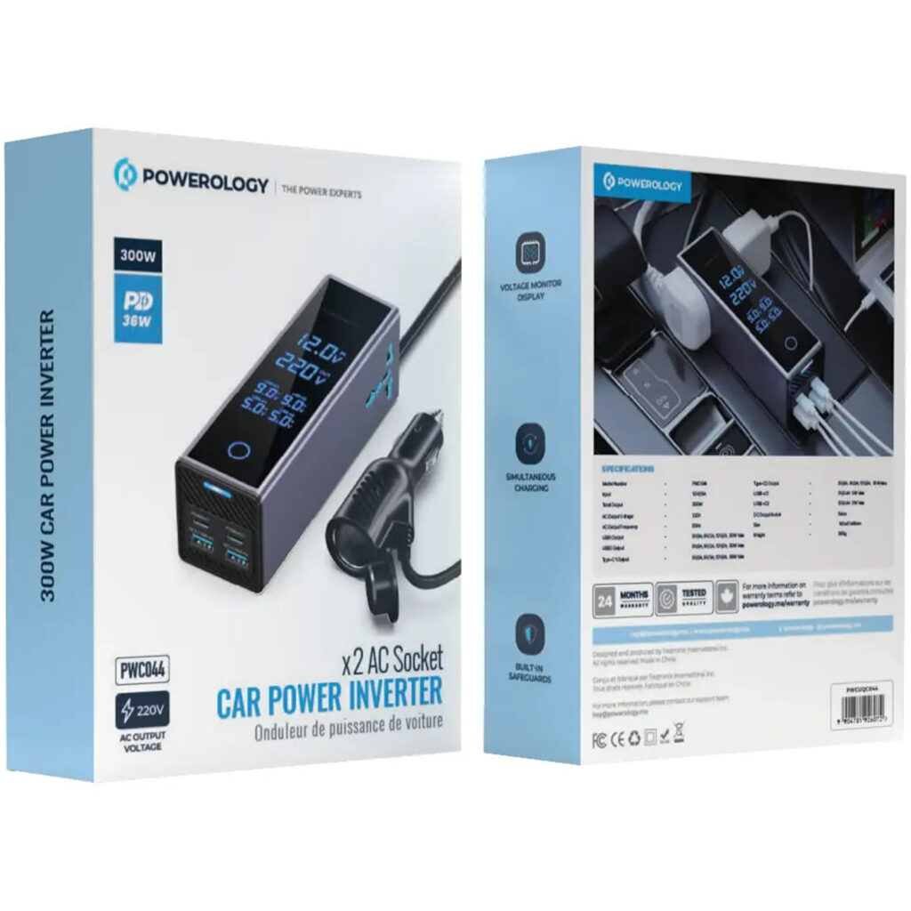 اینورتر فندکی USB و تایپ‌سی 300 وات پاورولوژی PWCUQC044