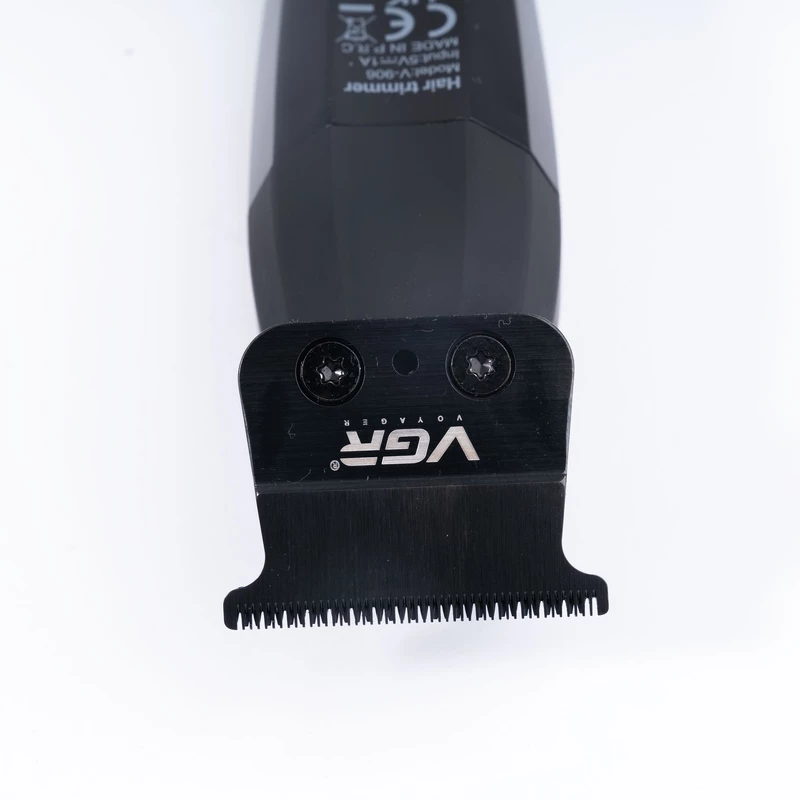 V-906 با بدنه فلزی مقاوم و پوشش DLC (Diamond-Like Carbon) برای دوام بالاتر، ظاهری حرفهای و مشکی مات دارد که وزن آن را به حدود ۲۵۰ گرم محدود میکند – تعادلی مناسب بین استحکام و سبکی برای استفاده طولانی بدون خستگی دست. ابعاد کامپکت (حدود ۱۵۰x۴۵x۳۰ میلیمتر) آن، حمل آسان در کیف یا جیب را ممکن میسازد و طراحی ارگونومیک با دسته ضدلغزش، کنترل دقیق را در نواحی حساس مانند گردن یا خط فک تضمین میکند. تیغه T-type با پوشش DLC کربن استیل، خودتیزشونده است و لبههای zero gapped (۰ میلیمتر) آن، برش بسیار نزدیک به پوست بدون بریدگی فراهم میکند – مناسب برای صفرزنی، engraving و fading.