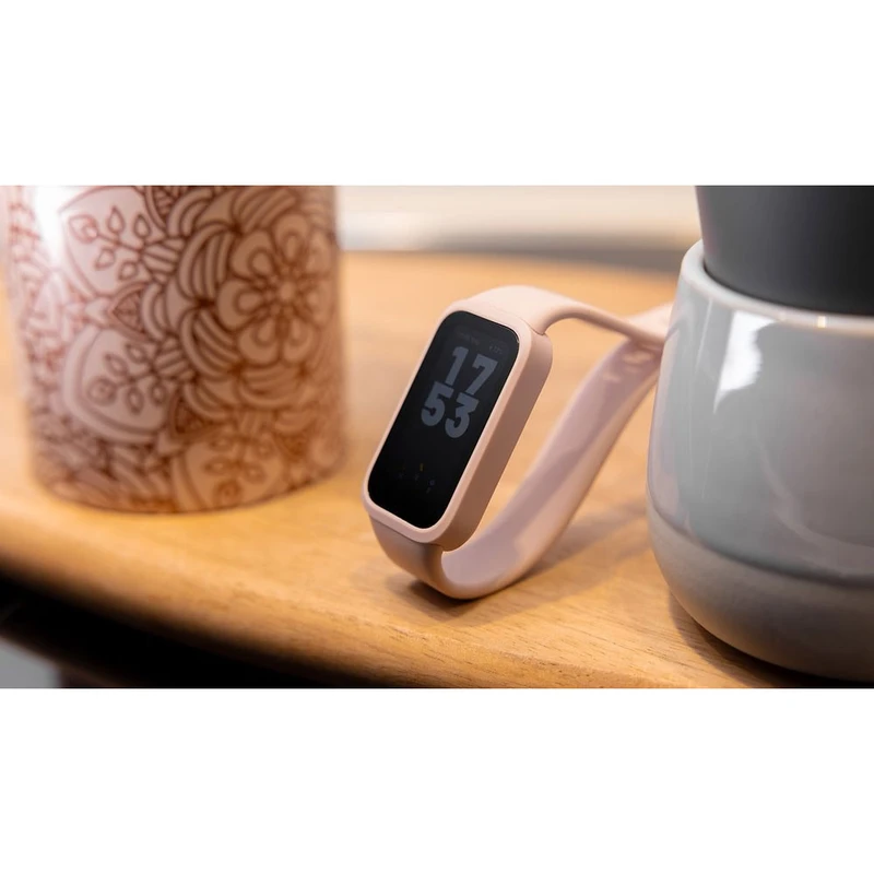 بدون دکمه فیزیکی، تمام کنترلها از طریق **صفحه لمسی** و ژستهای swipe انجام میشود. گواهینامه **۵ATM** مقاومت تا عمق ۵۰ متری آب را تضمین میکند و آن را برای **شنا، دوش گرفتن و فعالیتهای آبی روزمره** مناسب میسازد. طراحی **pebble-shaped** با لبههای گرد و رنگهای شاد، ظاهری **جوانپسند و اسپرت** ایجاد کرده که با لباسهای کژوال و ورزشی هماهنگ است.